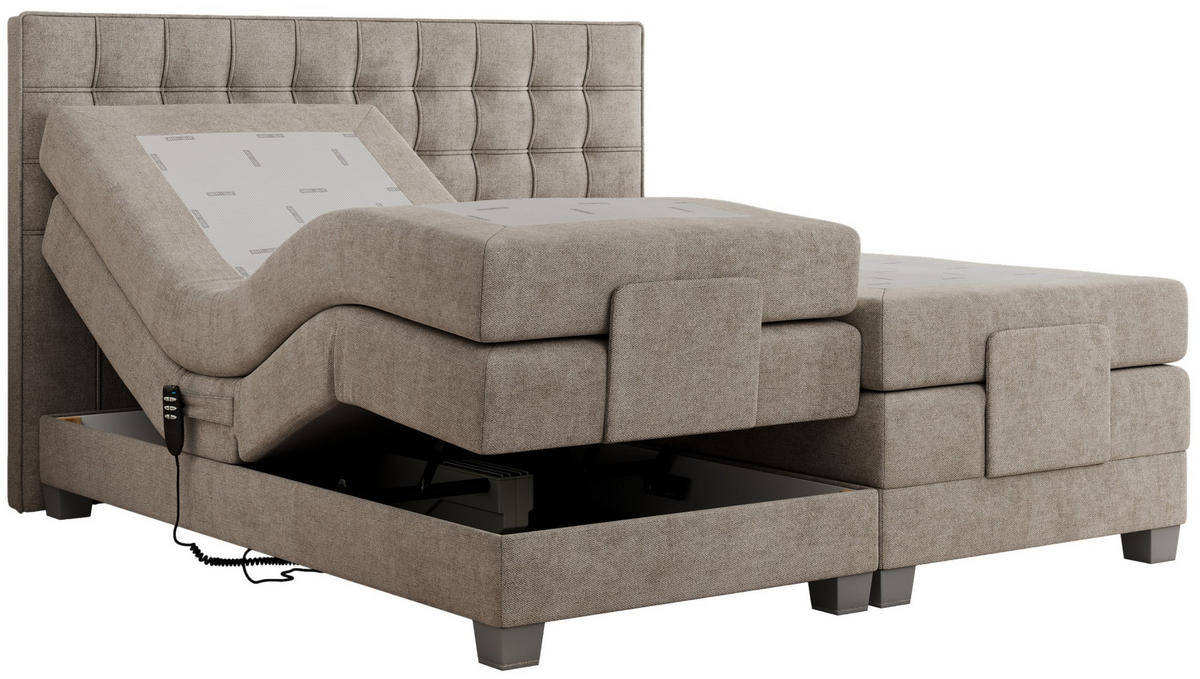 BOXSPRINGBETT 180/200 cm, in Hellgrau, Matratze, Topper, motorische Verstellbarkeit, H2 + H2 = mittel