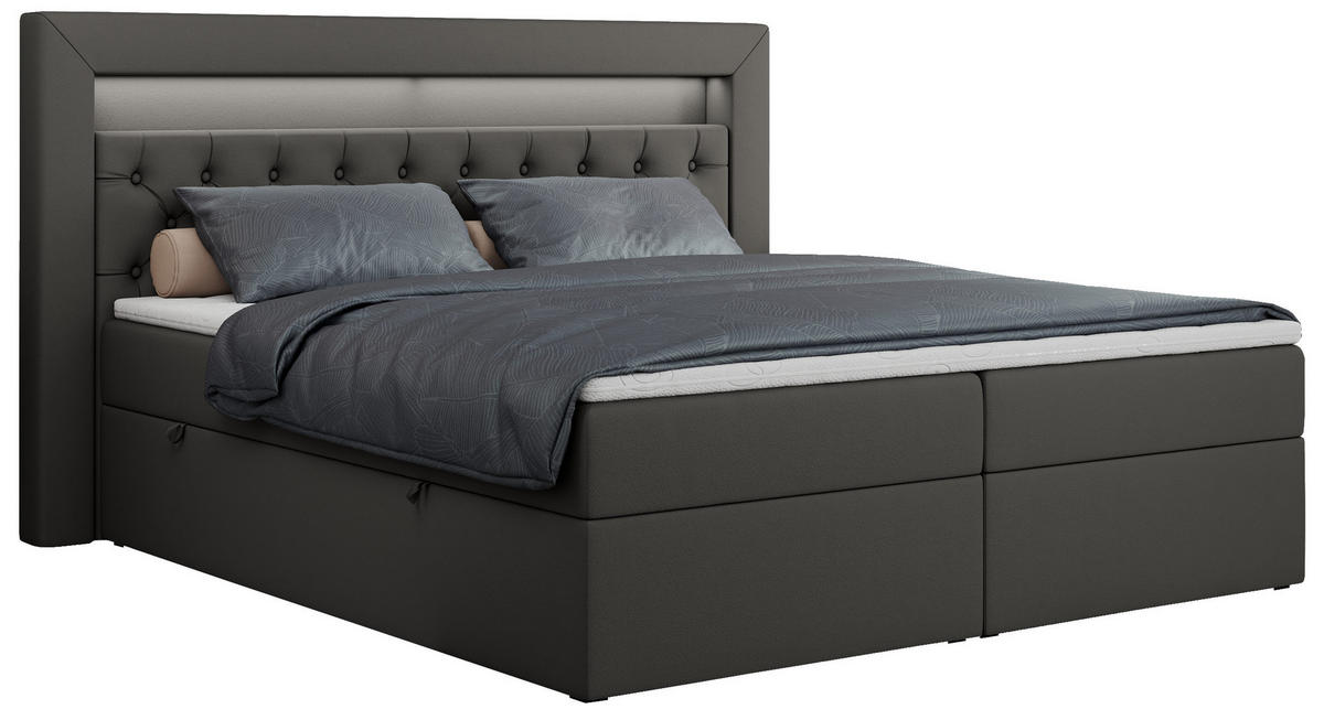 MKS BOXBETT GOLD-6 LED 140/200 Dunkelgrau Kunstleder - H3