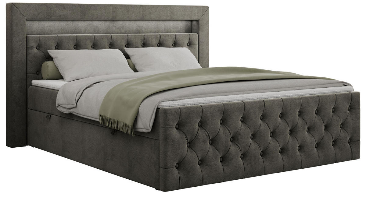 - Besonderheiten: Bettkasten, Federkernmatratze, Matratze in verschiedenen Härtegraden erhältlich, gepolstertes Kopfteil, Topper durchgehend, Kingsize, Beleuchtung