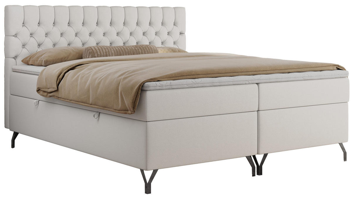 BOXBETT 180/200 cm, in Beige, gepolstertes Kopfteil, Bettkasten, Topper, Matratzen, H3 + H3 = fest