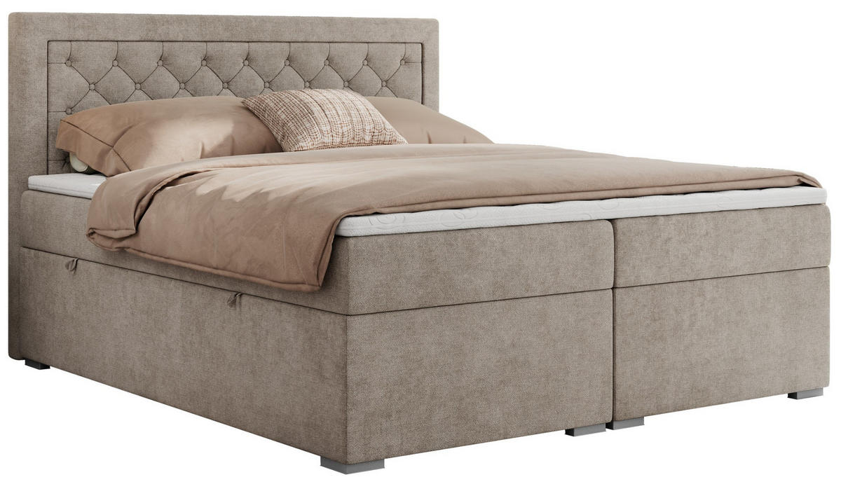 BOXBETT 180/200 cm, in Beige, gepolstertes Kopfteil, Bettkasten, Topper, Matratzen, H3 + H3 = fest
