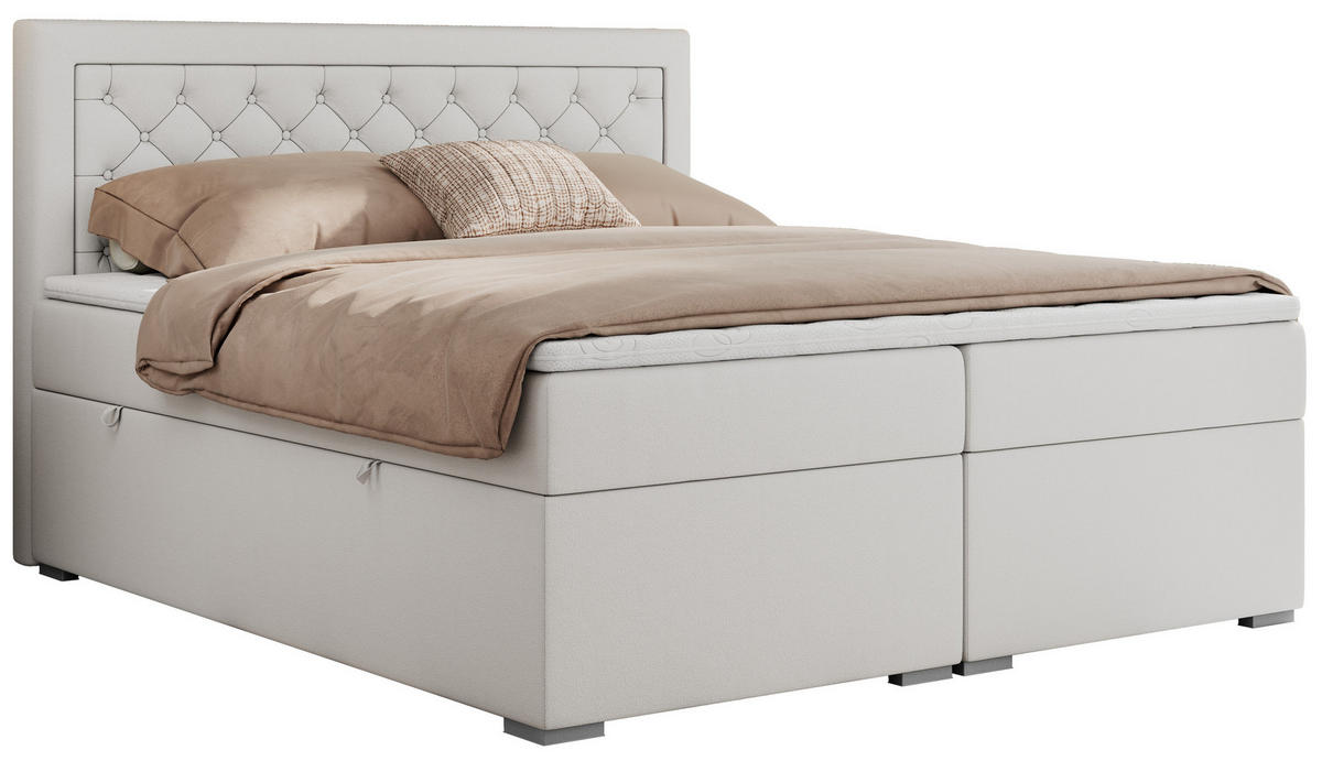 - Besonderheiten: Bettkasten, Federkernmatratze, Matratze in verschiedenen Härtegraden erhältlich, gepolstertes Kopfteil, Topper durchgehend, Kingsize
