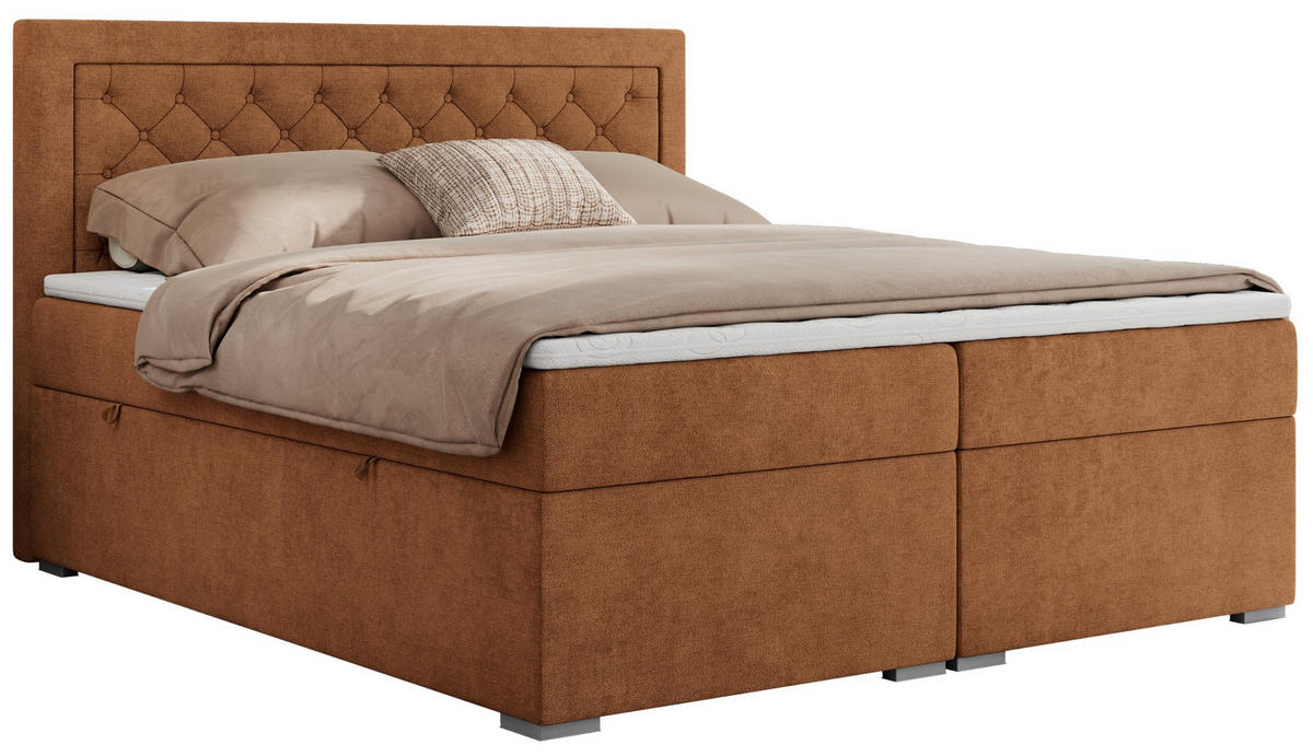 - Besonderheiten: Bettkasten, Federkernmatratze, Matratze in verschiedenen Härtegraden erhältlich, gepolstertes Kopfteil, Topper durchgehend, Kingsize