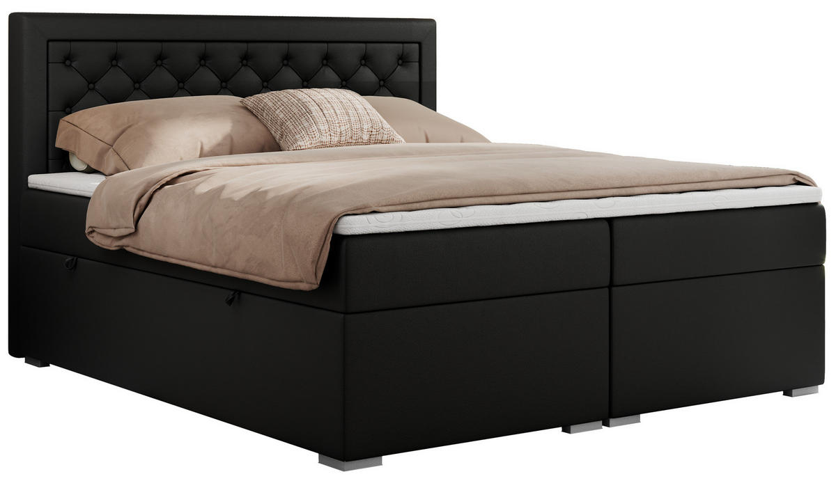 - Besonderheiten: Bettkasten, Federkernmatratze, Matratze in verschiedenen Härtegraden erhältlich, gepolstertes Kopfteil, Topper durchgehend, Kingsize