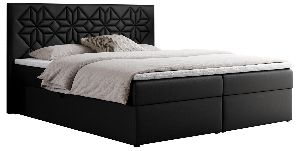MKS BOXBETT LEILA 180/200 Schwarz Kunstleder - H3