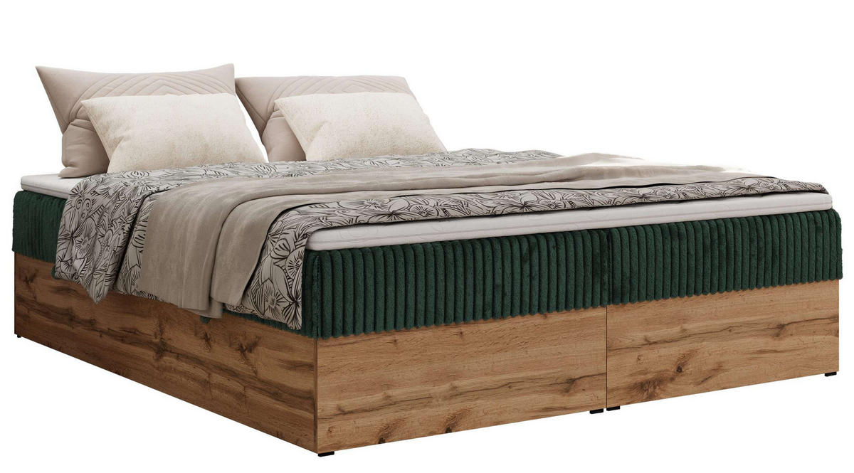MKS BOXBETT WOOD ZERO 140/200 - Dunkelgrün Cord - H3 - Topper T25