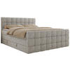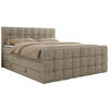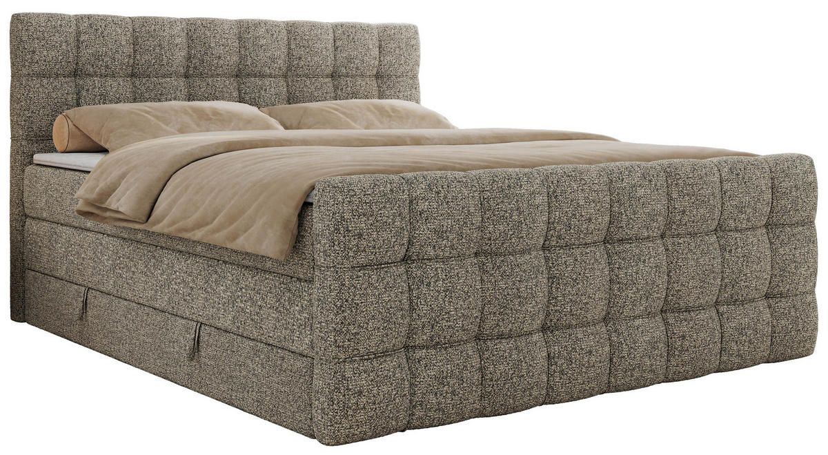 BOXBETT 180/200 cm, in Beige, gepolstertes Kopfteil, Bettkasten, Topper, Matratzen, H3 + H3 = fest