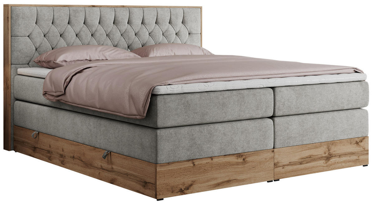 - Besonderheiten: Bettkasten, Federkernmatratze, Matratze in verschiedenen Härtegraden erhältlich, gepolstertes Kopfteil, Topper durchgehend, Kingsize
