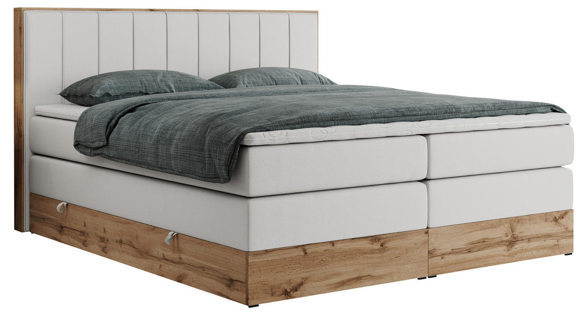 - Besonderheiten: Bettkasten, Federkernmatratze, Matratze in verschiedenen Härtegraden erhältlich, gepolstertes Kopfteil, Topper durchgehend, Kingsize