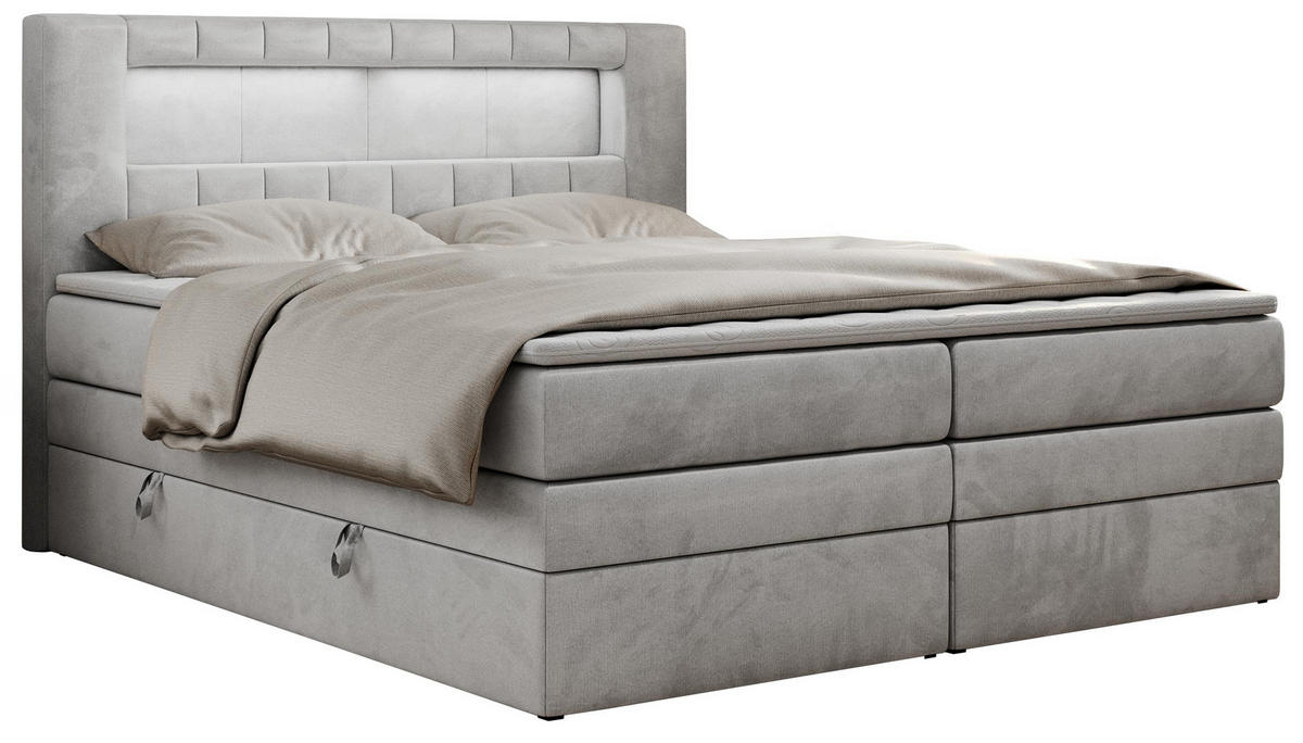 MKS BOXSPRINGBETT GOLD-5 KING LED 140/200 Hellgrau Velvet - H4