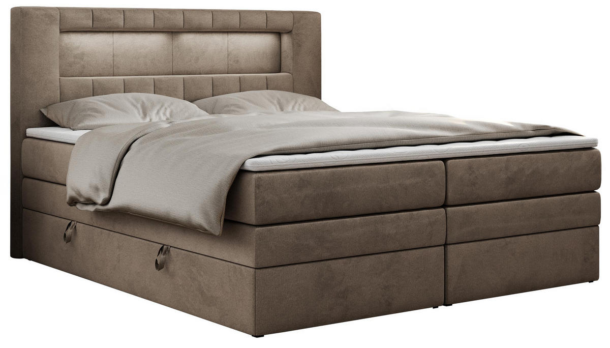 MKS BOXSPRINGBETT GOLD-5 KING LED 160/200 Braun Velvet - H3
