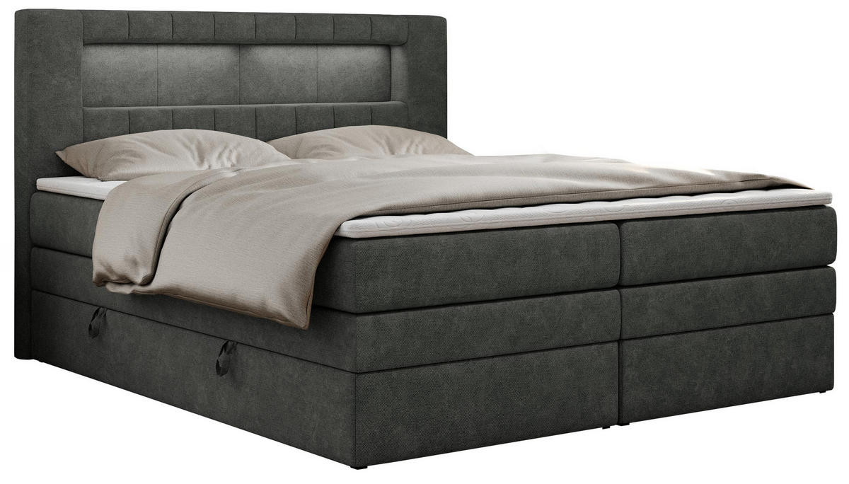 MKS BOXSPRINGBETT GOLD-5 KING LED 200/200 Dunkelgrau Struktur - H4