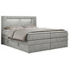 BOXSPRINGBETT MARBO 180x200 Hellgrau H2 und H3 mit Bettkasten 7-Zonen Taschenfederkern Matratze inkl. Visco Topper und Eiche