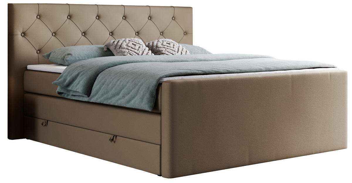MKS BOXSPRINGBETT KING VELEN 120/200 Braun Kunstleder - H3