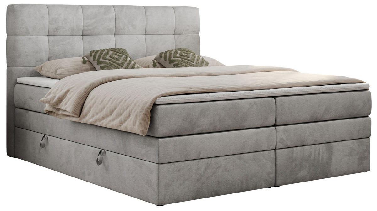 MKS BOXSPRINGBETT LUKA KING 160/200 Hellgrau Velvet - H4