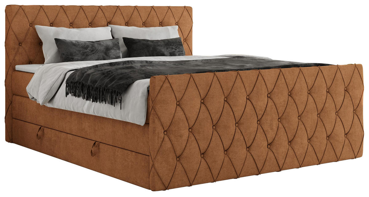 - Besonderheiten: Bettkasten, Federkernmatratze, Matratze in verschiedenen Härtegraden erhältlich, gepolstertes Kopfteil, Topper durchgehend, Kingsize