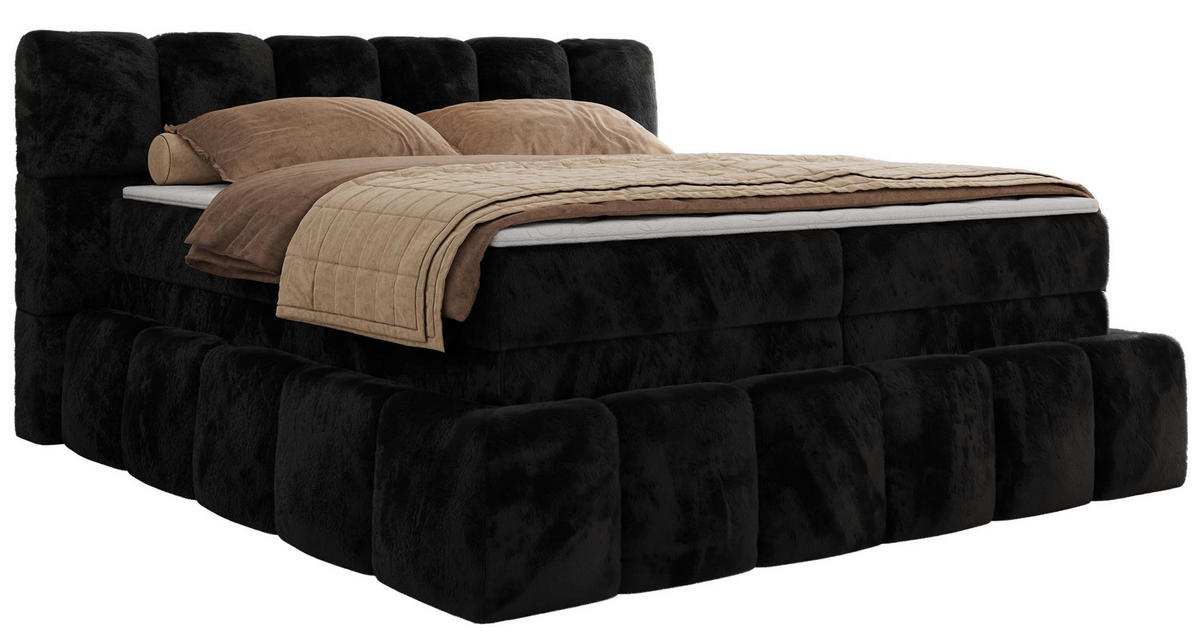 MKS BOXSPRINGBETT NIRA KING 120/200 Schwarz Plüsch - H4