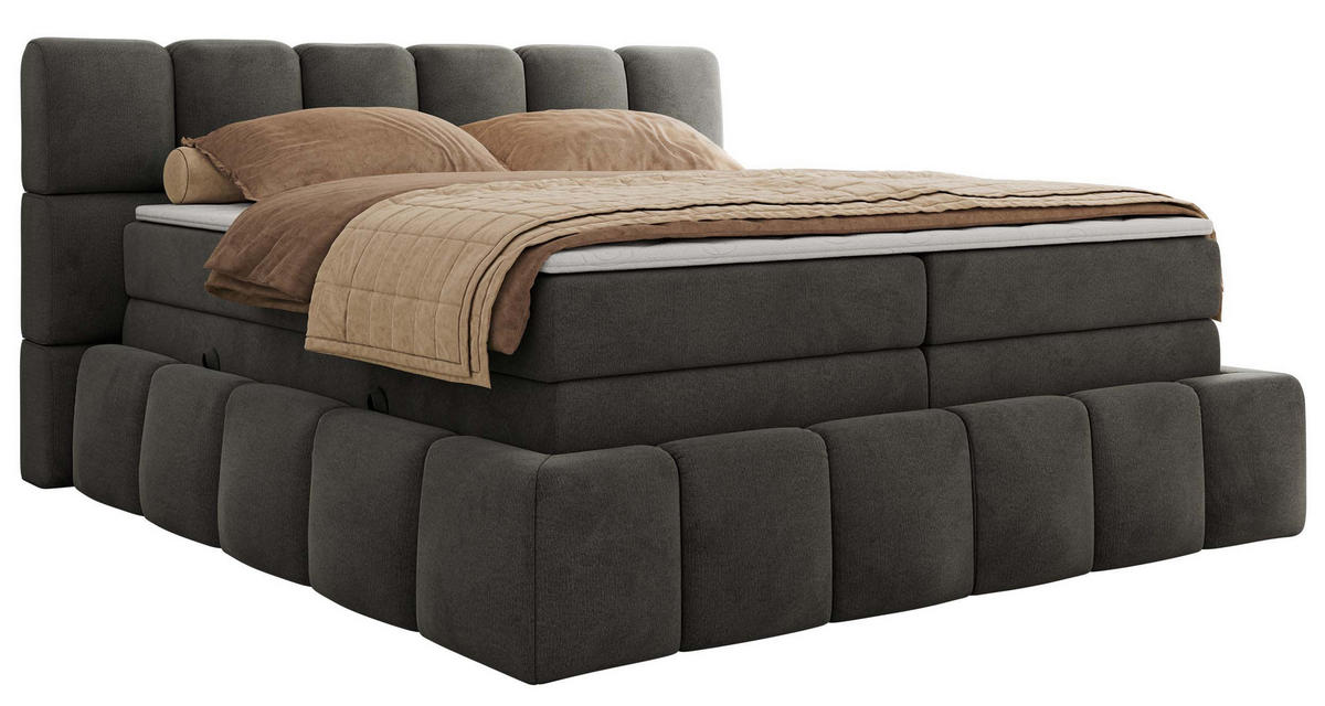 - Besonderheiten: Bettkasten, Federkernmatratze, Matratze in verschiedenen Härtegraden erhältlich, gepolstertes Kopfteil, Topper durchgehend, Kingsize