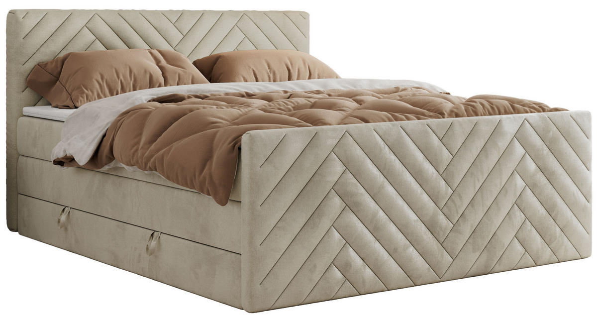 BOXBETT 160/200 cm, in Beige, Matratzen, Topper, Bettkasten, gepolstertes Kopfteil, H3 + H3 = fest