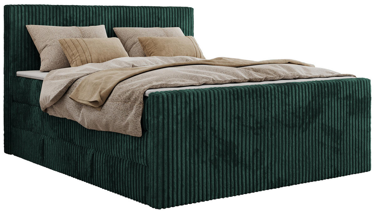 MKS BOXSPRINGBETT TILIANO KING DUO 180/200 - Dunkelgrün Cord - H3