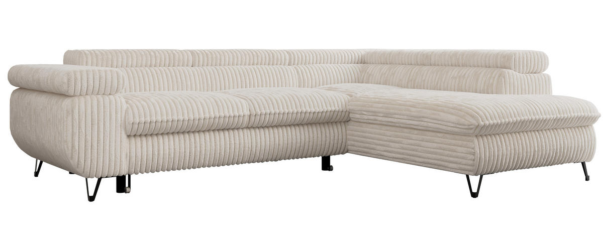 ECKSOFA PEDRO L Beige Cord - Rechts Seite - Beige/Schwarz, Textil/Metall (273/208cm) - MKSMKS