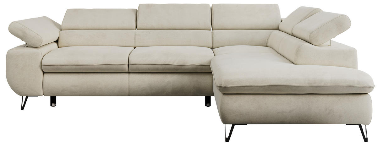 ECKSOFA PETER L Beige Velvet - Rechts Seite - Beige/Schwarz, Textil/Metall (273/208cm) - MKSMKS