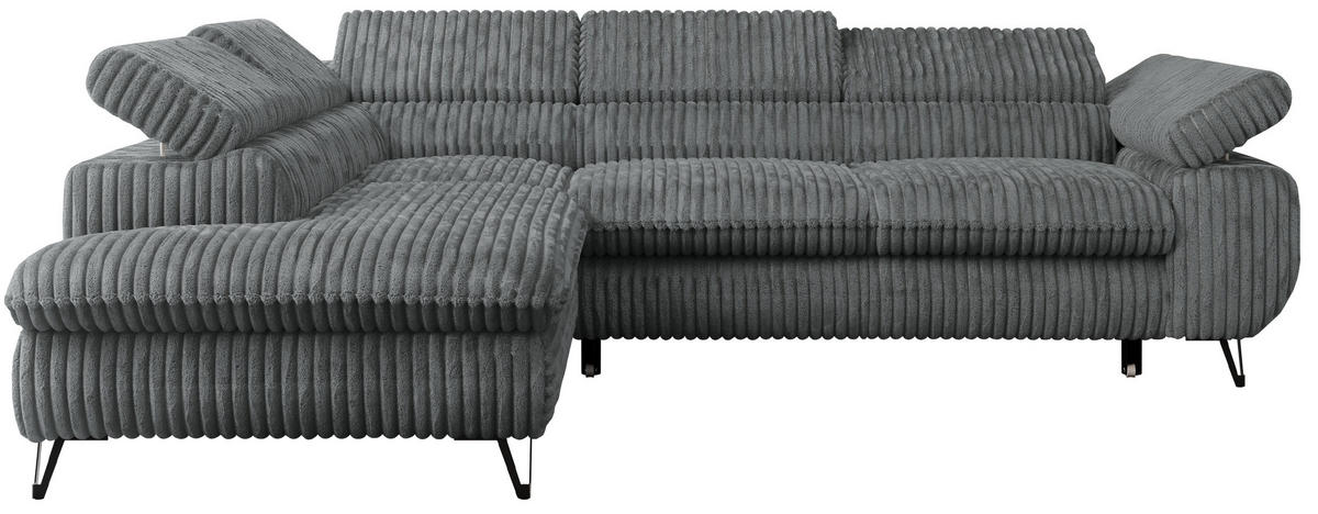 ECKSOFA PETER L Dunkelgrau Cord - Links Seite - Dunkelgrau/Schwarz, Textil/Metall (208/273cm) - MKSMKS
