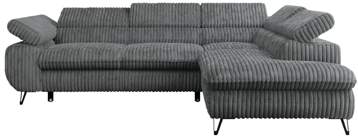 Die schwarzen Metallfüße verleihen dem Ecksofa mit Schlaffunktion einen modernen und eleganten Touch. Die vollständig mit Stoff bezogene Rückseite eine freie Platzierung im Raum ermöglicht.