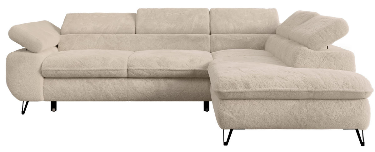 ECKSOFA PETER L Dunkelgrau Plüsch - Rechts Seite - Ecru/Schwarz, Textil/Metall (273/208cm) - MKS