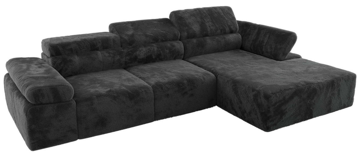 ECKSOFA RILASSO L Dunkelgrau Plüsch - rechts - Dunkelgrau/Schwarz, Kunststoff/Textil (174/296cm) - MKSMKS