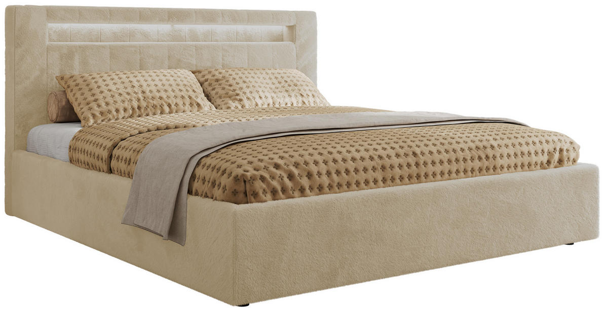 MKS POLSTERBETT GOLD 5 CLASSIC 140/200 - Creme Plüsch - Multipocket-Matratze