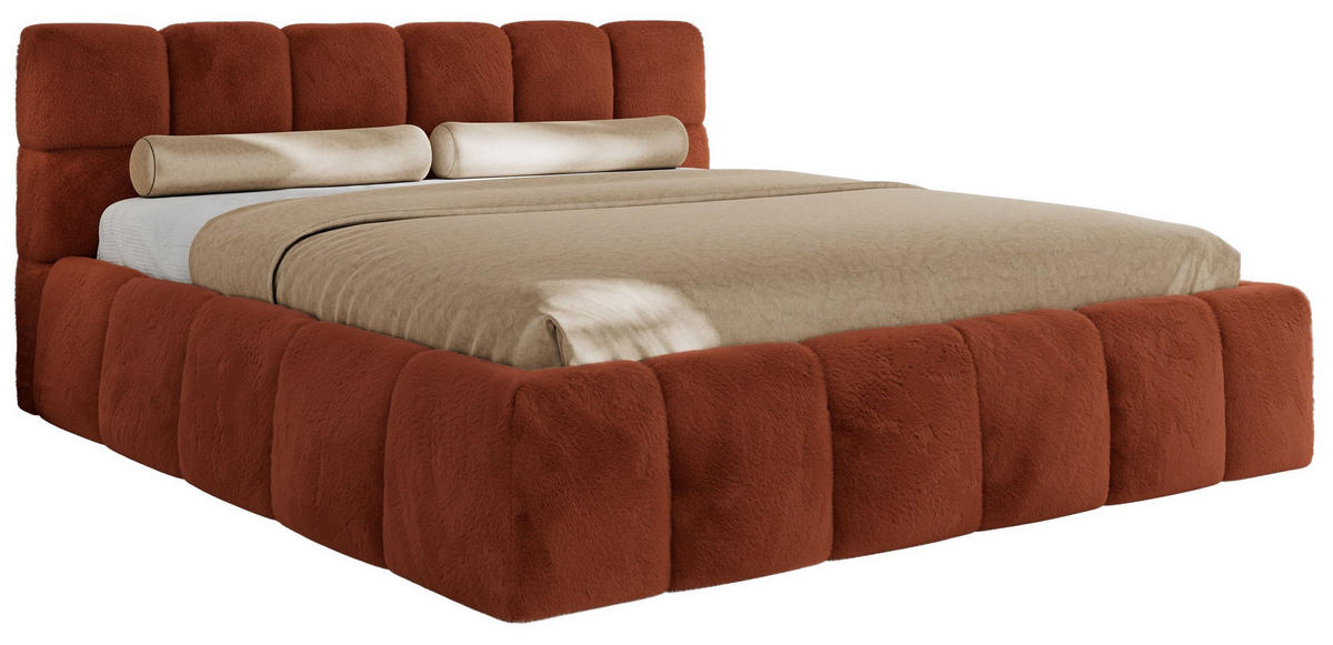 MKS POLSTERBETT NIRA CLASSIC 200/200 - Orange Plüsch - Schaum-Matratze
