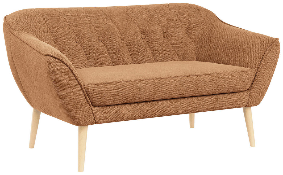 SOFA Pirs 2 Sitzer Strukture Orange - Orange/Braun, Holz/Textil (140/75/74cm) - MKS