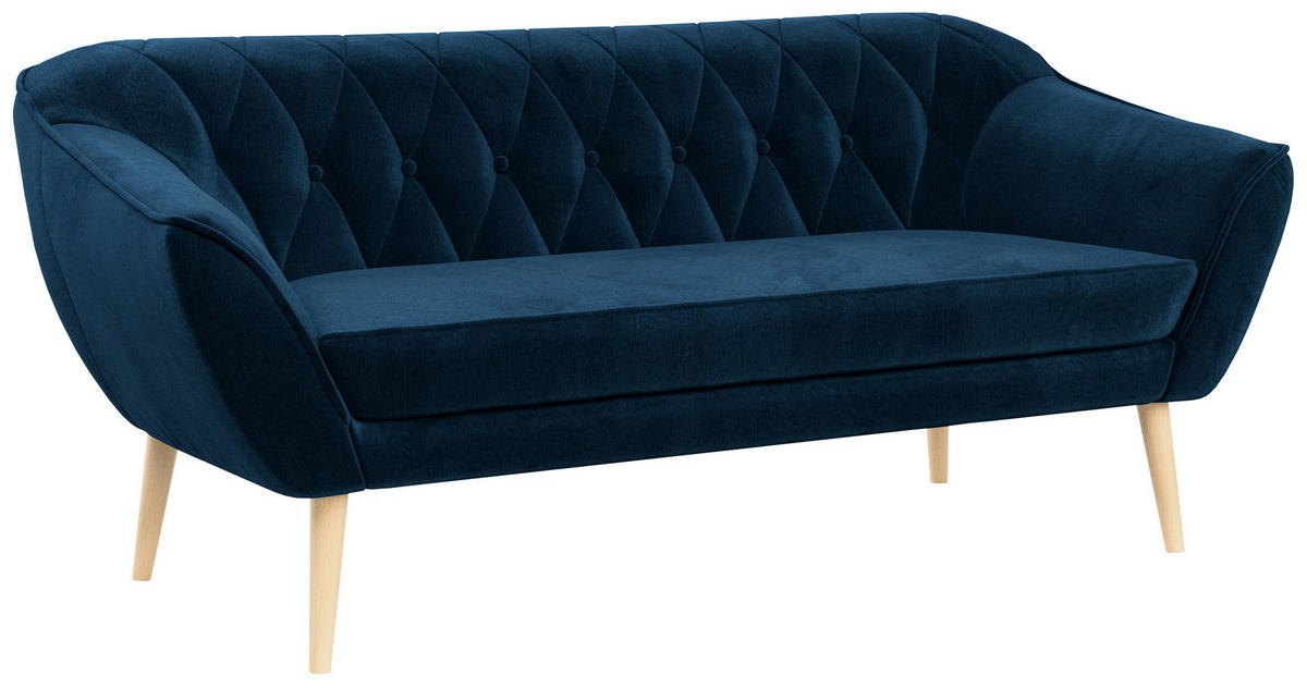 SOFA Pirs 3 Sitzer Velvet Dunkelblau - Dunkelblau/Braun, Holz/Textil (180/75/74cm) - MKSMKS