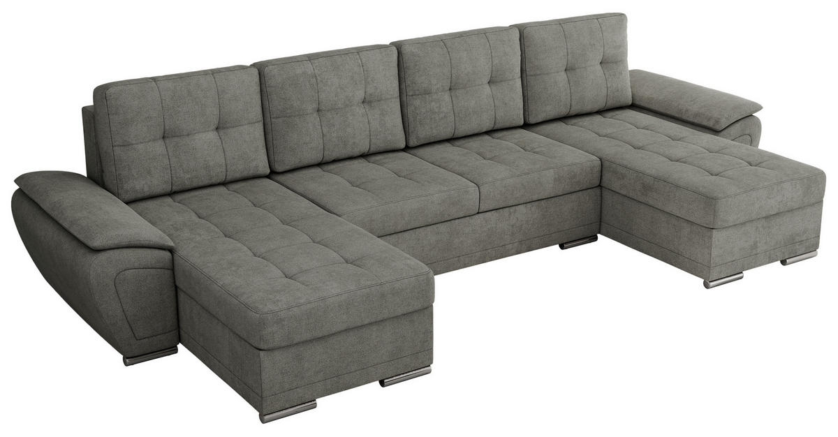 Das Ecksofa UMBRIA beeindruckt durch sein großzügiges, U-förmiges Design, das sowohl Stil als auch Funktionalität vereint. Als universelle Wohnlandschaft U-Form müssen Sie ihn nicht als rechte oder linke Seite konfigurieren. Diese Vielseitigkeit macht die Wohnlandschaft mit Schlaffunktion zu einer idealen Wahl für jedes Wohnzimmer.
