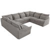 Ob klassisch oder modern – das universelle Design dieser modernen Couch passt sich jeder Einrichtung an. Dank der vollständig bezogenen Rückseite kann das modulare Sofa auch frei im Raum aufgestellt werden und wird so zum Mittelpunkt des Wohnzimmers. Dekorative Kissen, Flachkissen und große Rückenkissen verleihen der Couch-U-Form eine luxuriöse Optik und sorgen für zusätzlichen Komfort.