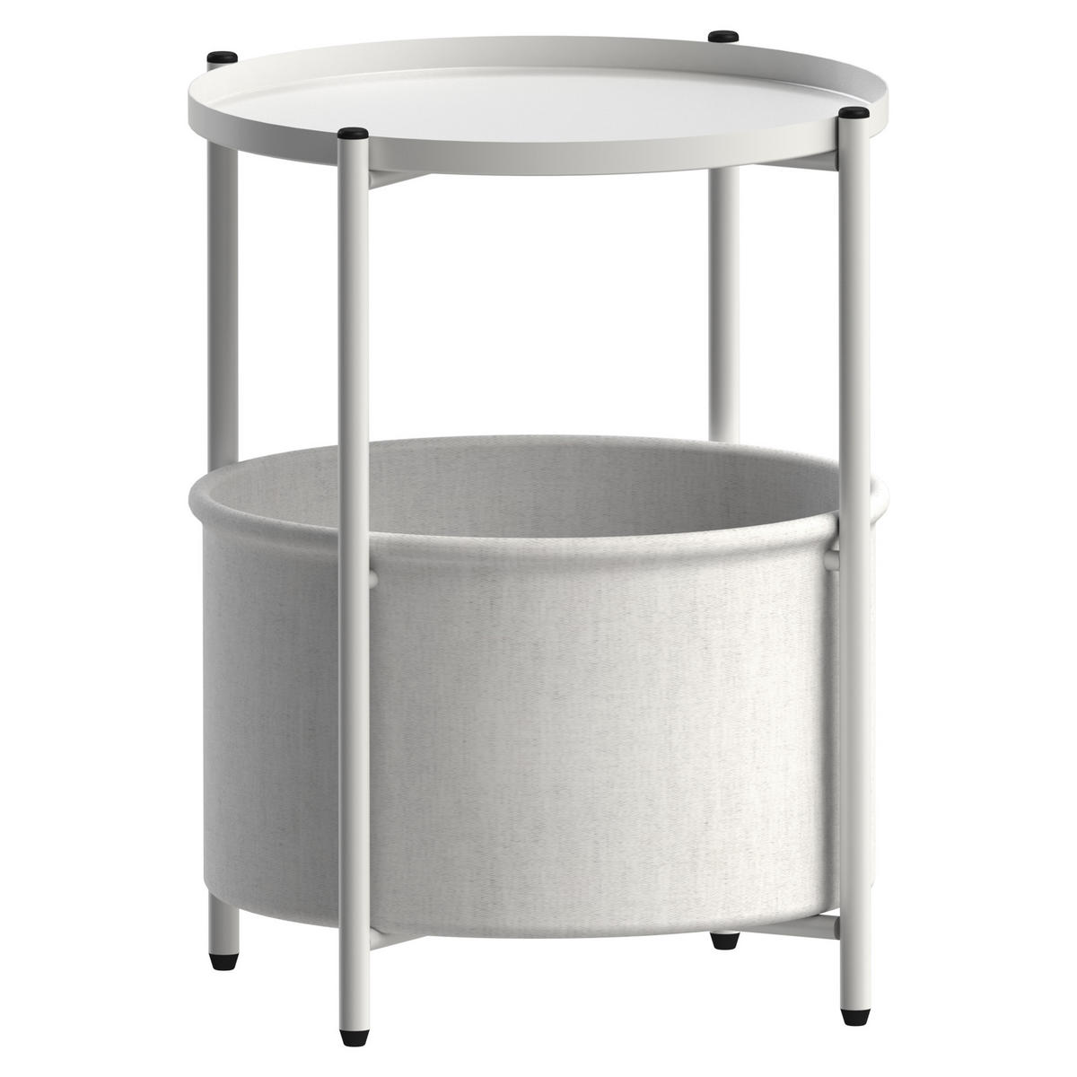 Beistelltisch mit abnehmbarer Tablett-Aufsatz und Stoffkorb