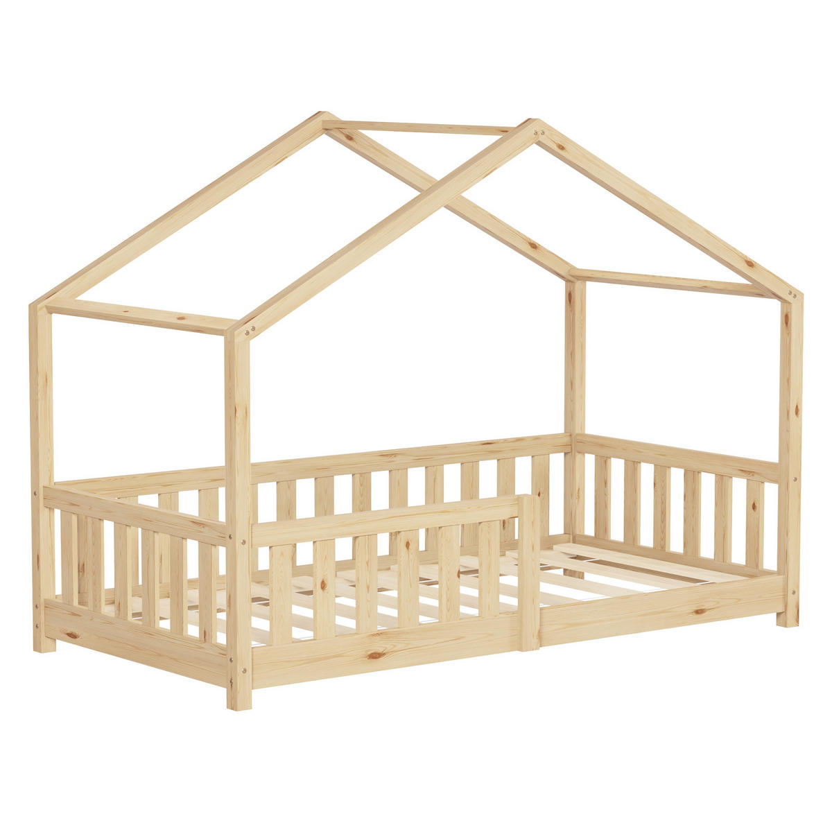 ML-DESIGN HAUSBETT 80x160 cm Natur aus Kiefernholz mit Rausfallschutz