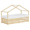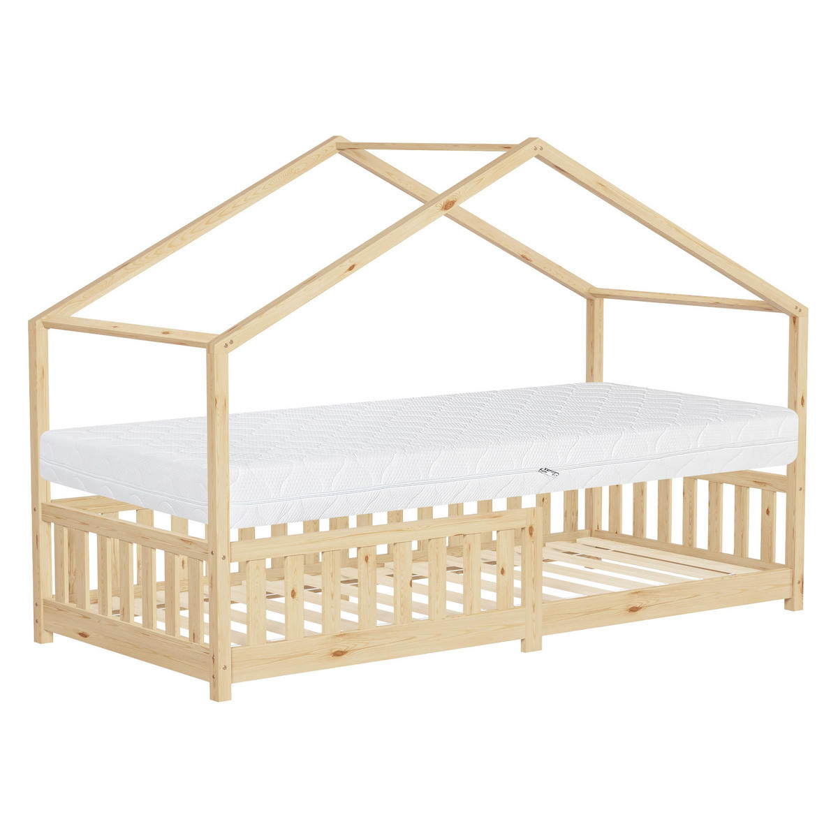 ML-DESIGN HAUSBETT mit Matratze 90x200 cm H:16cm Natur aus Kiefernholz mit Rausfallschutz