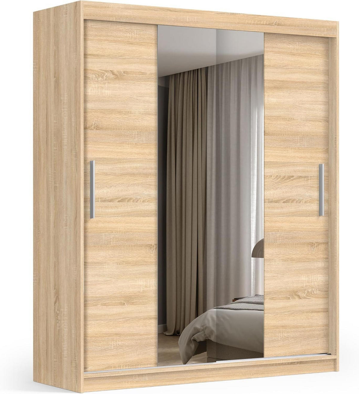Der Schiebetürenschrank 180 cm mit Spiegel ist die perfekte Kombination aus Funktionalität, Stauraum und modernem Design. Dank seiner praktischen Schiebetüren benötigt er beim Öffnen keinen zusätzlichen Platz und eignet sich daher ideal für kleinere Räume wie Schlafzimmer, Ankleidezimmer oder Flur. Er spart wertvolle Fläche und schafft gleichzeitig eine elegante, geordnete Atmosphäre.