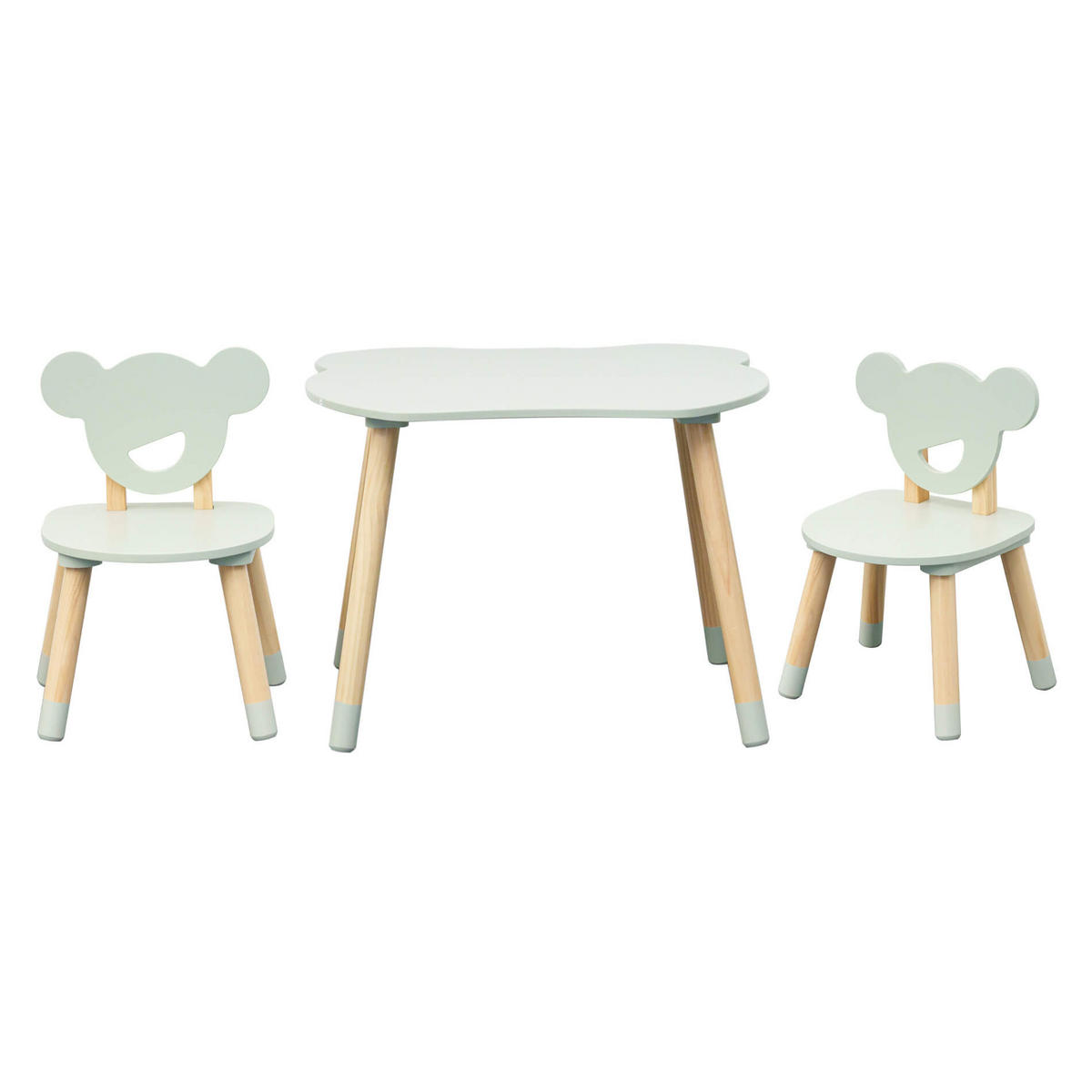 - SPEZIFIKATIONEN: Tischmaße: H 44 x B 60 x T 56 cm - Stühle: H 47 x B 30 x T 28 cm - Material: MDF, Kiefer - Farbe: Aqua Grün, Braun - Maximale Belastbarkeit des Tisches: 25 kg - Stühle: 45 kg - Anzahl der Teile im Set: 3 Stück - Montage erforderlich: ja - Code: RE7139