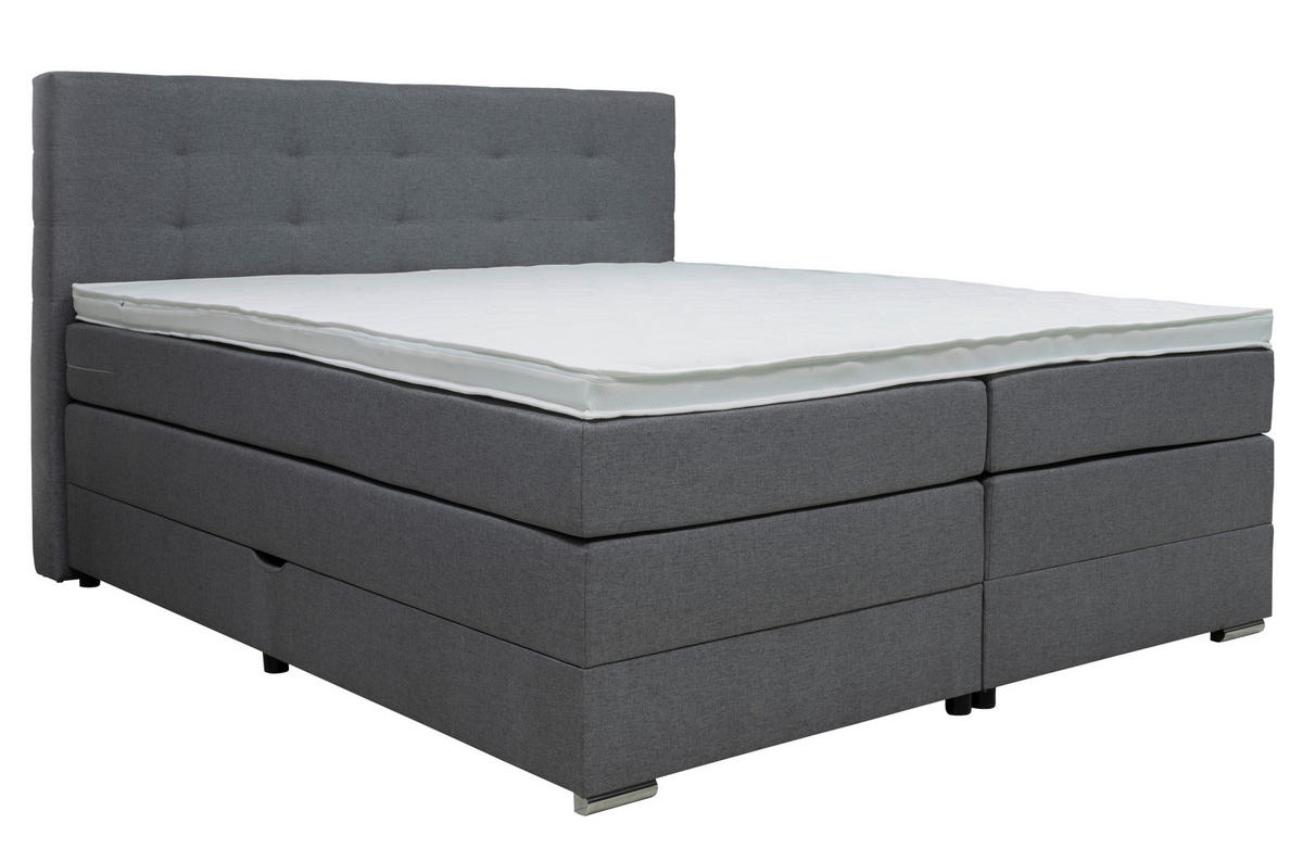BOXSPRINGBETT 180/200 cm, in Grau, Matratze, gepolstertes Kopfteil, Bettkasten, Topper, H2 + H3 = mittel + fest