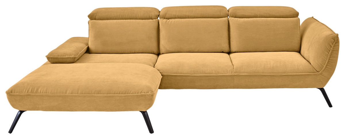 Mit diesem currygelben Ecksofa mit Cord-Bezug landen Sie auf jeden Fall einen Hit in Sachen Wohnglück!