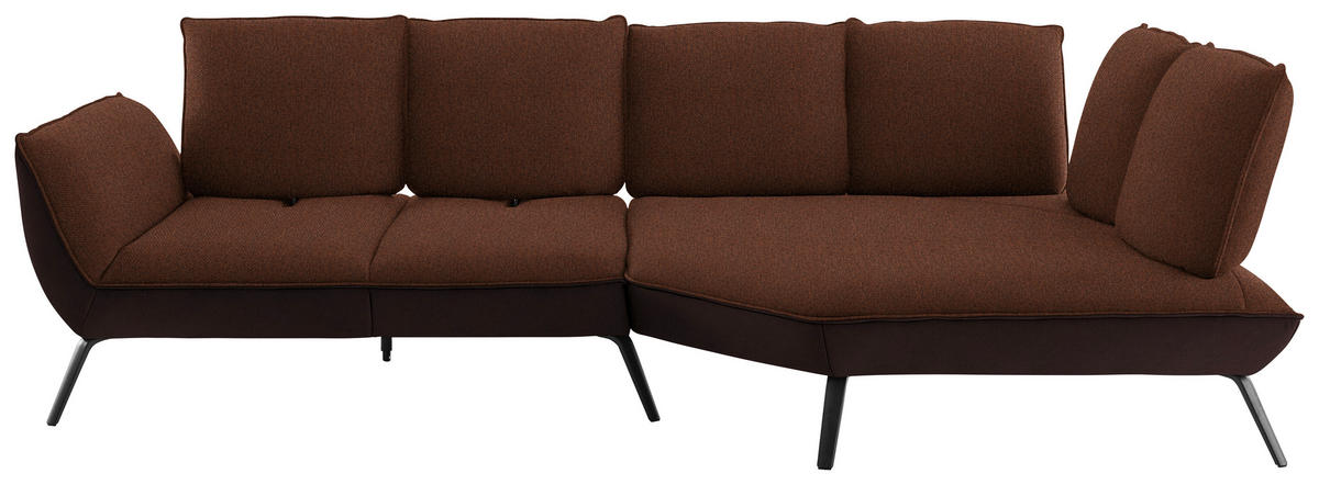 Als treue Begleitung für wonnige Time-outs daheim gesellt sich dieses kupferfarbene Ecksofa mit Flachgewebe-Bezug gerne zu Ihnen!
