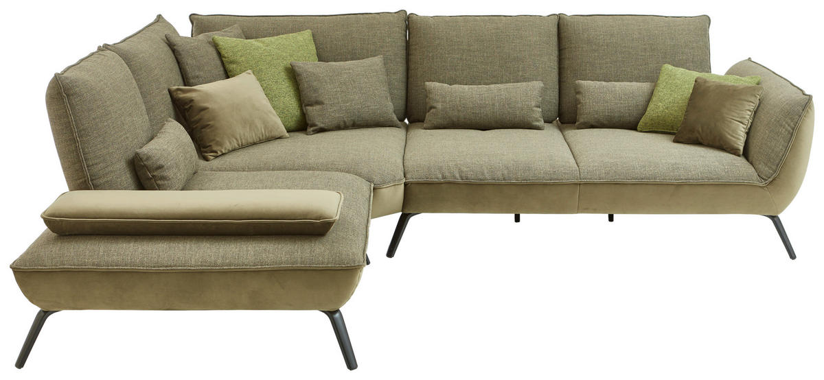 Verwöhnen Sie sich selbst mit diesem olivgrünen Ecksofa mit Flachgewebe-Bezug!
