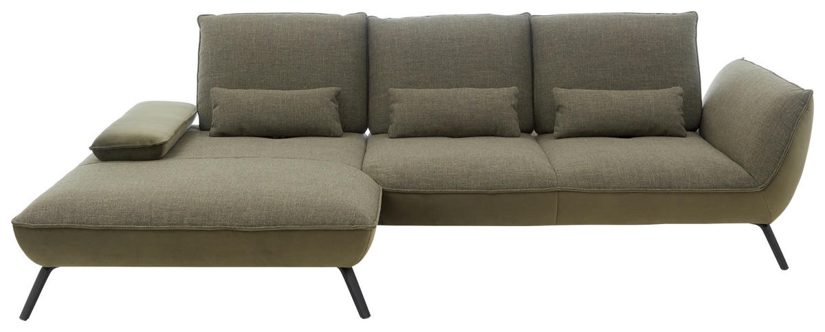 Können Sie sich etwas Besseres vorstellen als auf diesem olivgrünen Ecksofa mit Flachgewebe-Bezug alles um sich herum zu vergessen?
