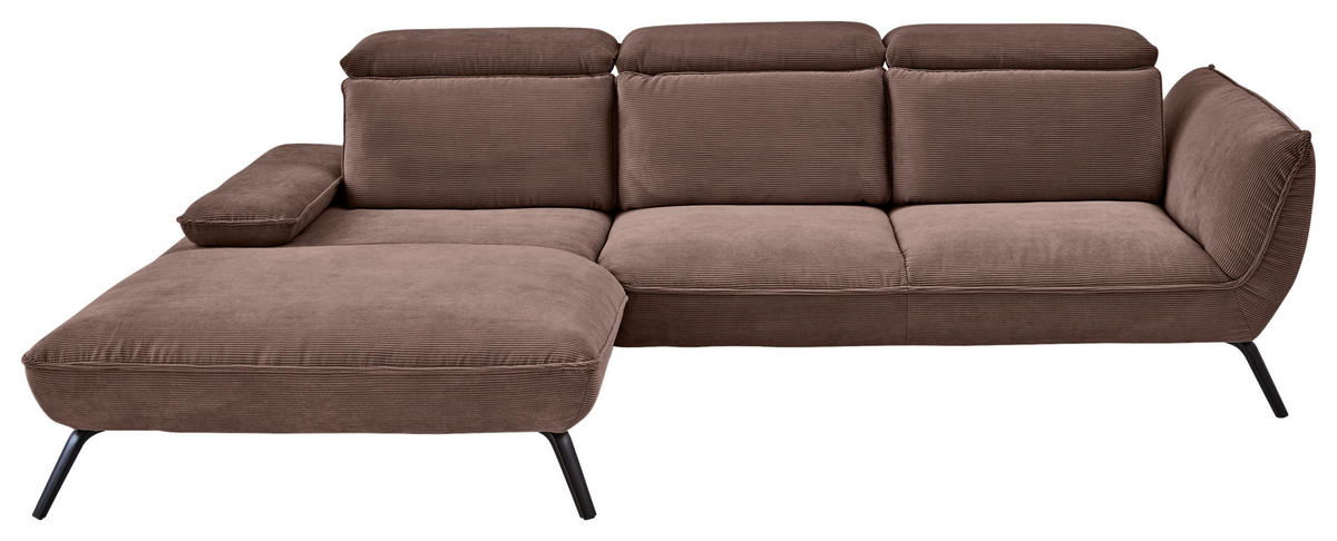 Genießen Sie Ihr Rendezvous mit der wohligen Unbeschwertheit des Seins auf diesem taupefarbenen Ecksofa mit Cord-Bezug!