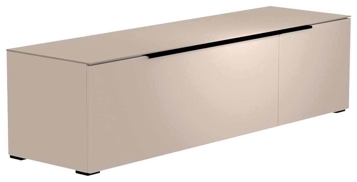 Lowboard in Sandfarben mit Glasplatte - puristischer Chic trifft Stauraum