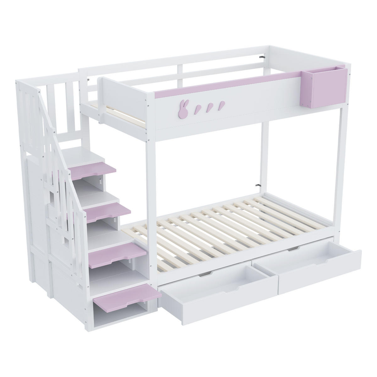 Modfu ETAGENBETT aus Massivholz 90x200 cm in Weiß mit Stauraum & Schubladen