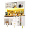 - Funktionen: höhenverstellbares 3-stufiges Regalsystem, Glasschiebetür, MDF-Pinnwand, Weinregal, gepolsterte Glas-Schublade, LED-Lichtleiste per App (Timer & musikresponsiv)